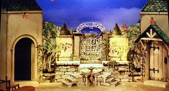 Designed by Donald O'Brien. Scenic Artist Brian Willis. Sets built by Norman Ballentine. Performed by Portrush Music Society at the Riverside Theatre Coleraine. (1996) |